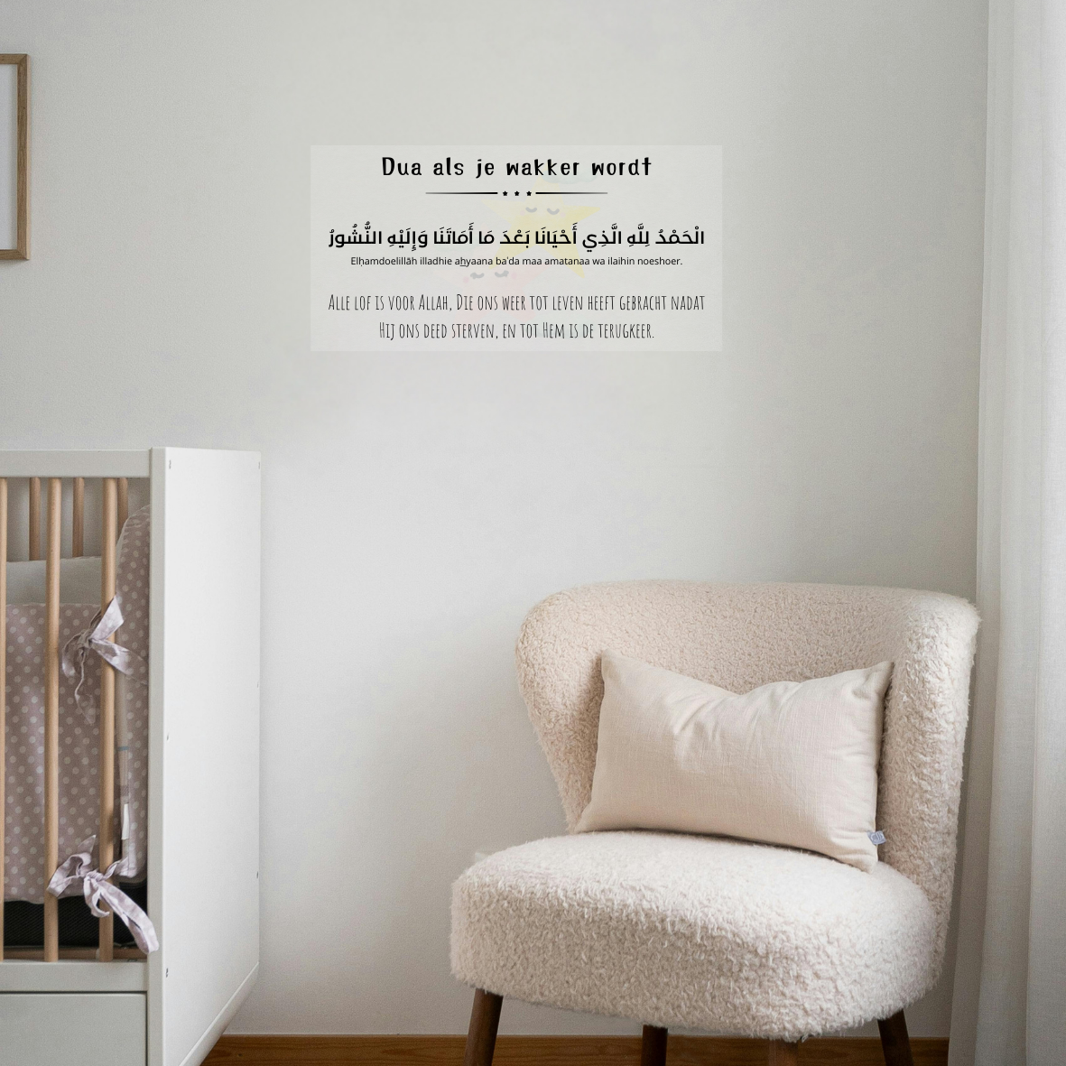 De islam leert ons om Allah in zoveel mogelijke aspecten in ons leven te betrekken. Bijvoorbeeld wanneer je gaat slapen, naar het toilet gaat en het toilet verlaat. Ook vlak voor het slapebn. Allah staat centraal in het leven van een moslim. Wanneer we wakker worden en onze ogen openen, dan danken we Allah voor een nieuwe dag. Onze transparante dua sticker helpt je om deze mooie soennah dagelijks te herinneren en eenvoudig toe te passen.