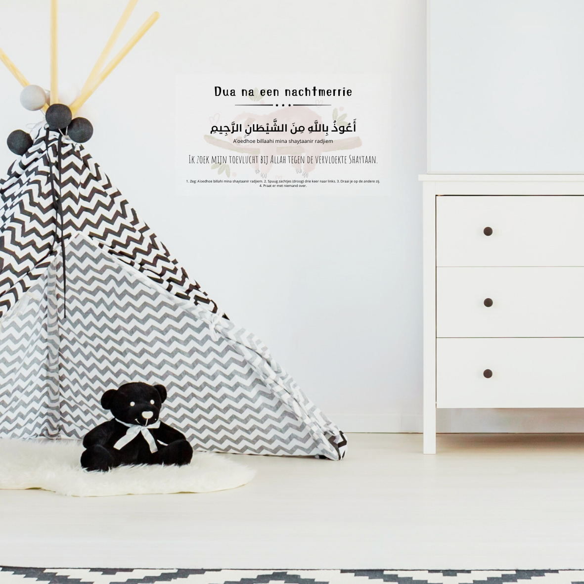 De islam leert ons om Allah te gedenken in alle aspecten van het leven, zelfs tijdens angstige momenten zoals het wakker worden uit een nachtmerrie. De Profeet ﷺ leerde ons specifieke dua’s om te zeggen na het ervaren van een nare droom. Onze transparante dua sticker helpt je om deze mooie soennah dagelijks te herinneren en eenvoudig toe te passen.