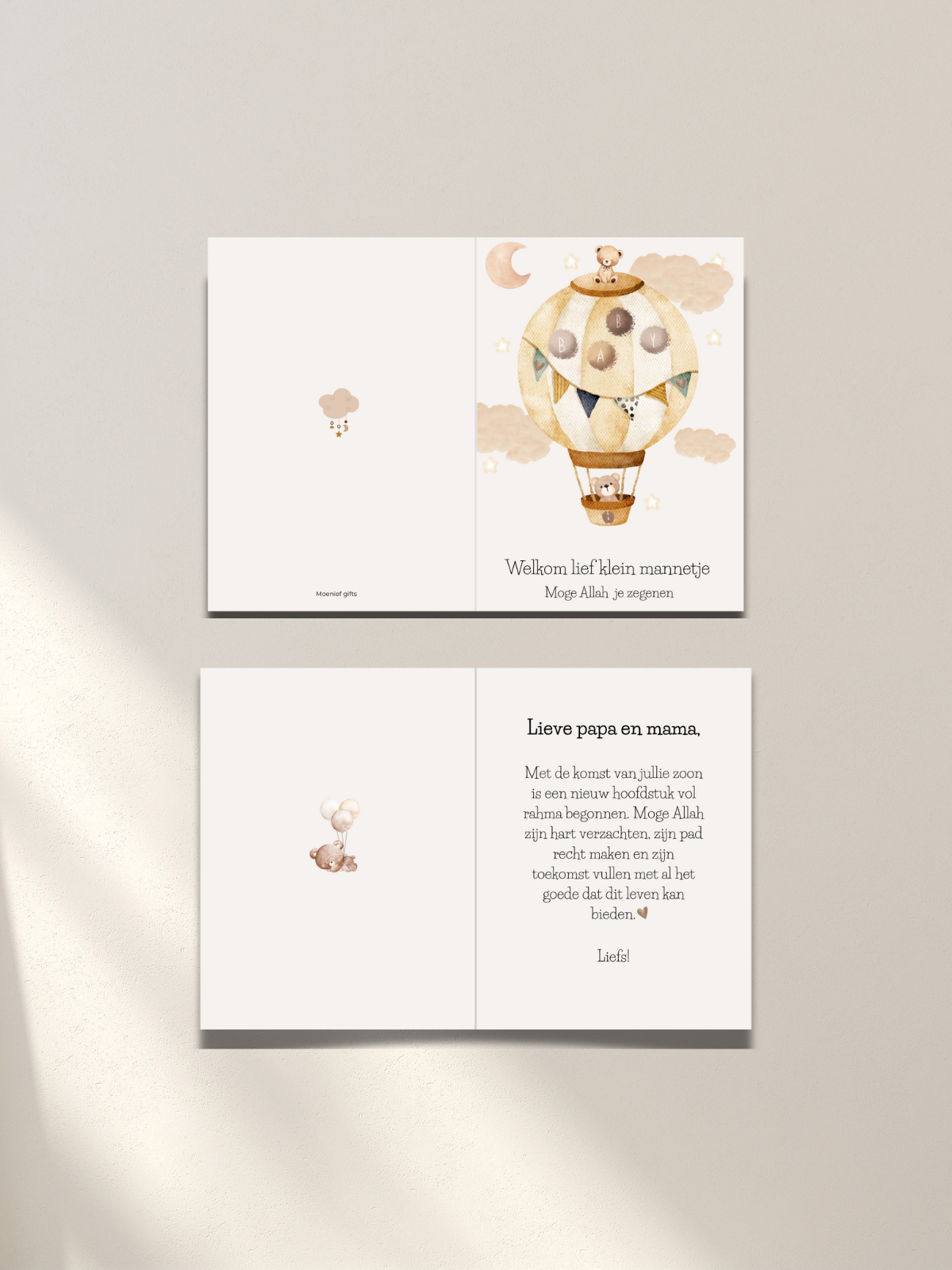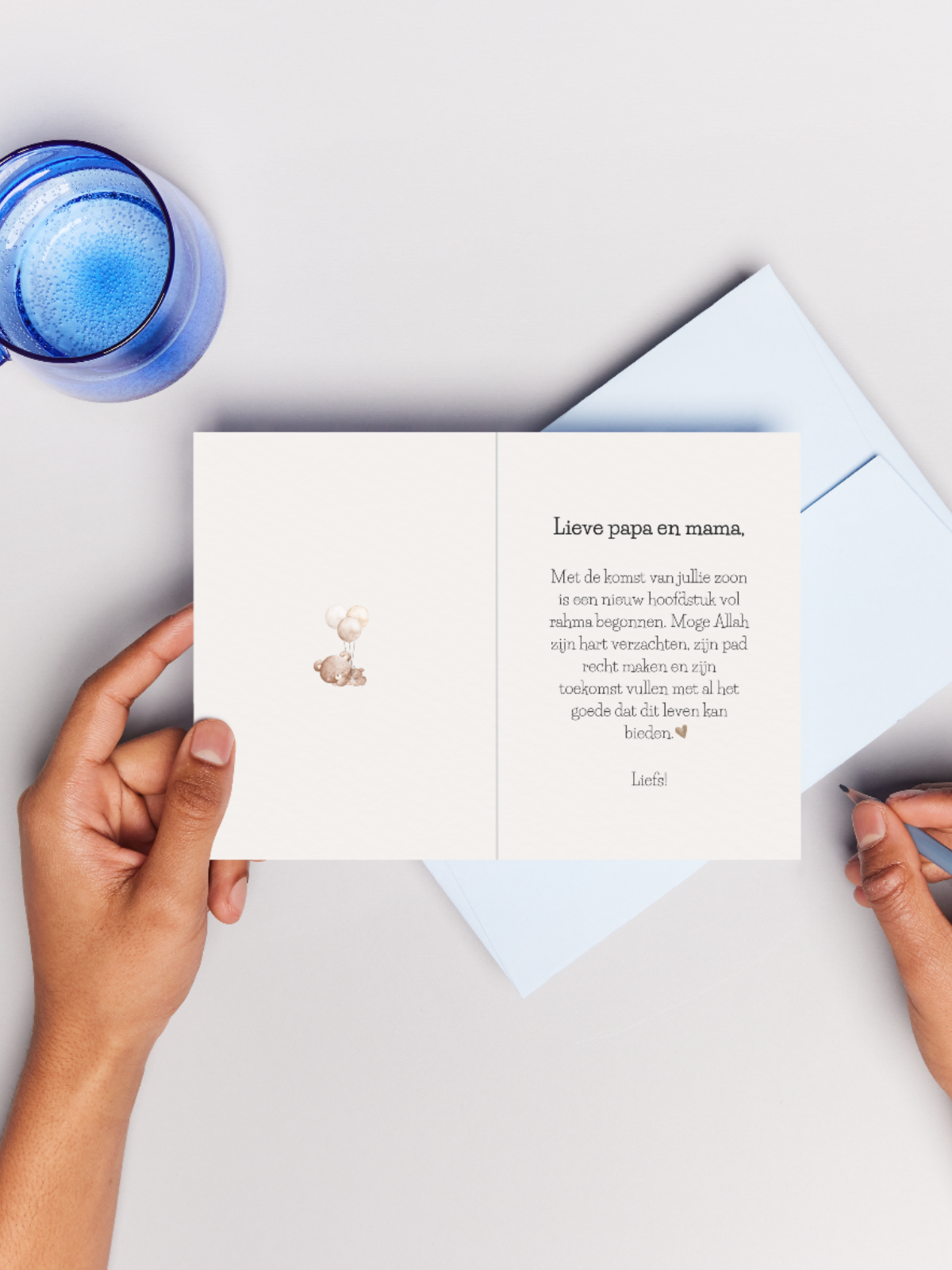 Vier de komst van een lief klein wonder met onze wenskaart. Onze geboortekaarten zijn liefdevol ontworpen met warme kleuren en details. Een betekenisvol gebaar voor een bijzonder moment. Ideaal om ouders te feliciteren.