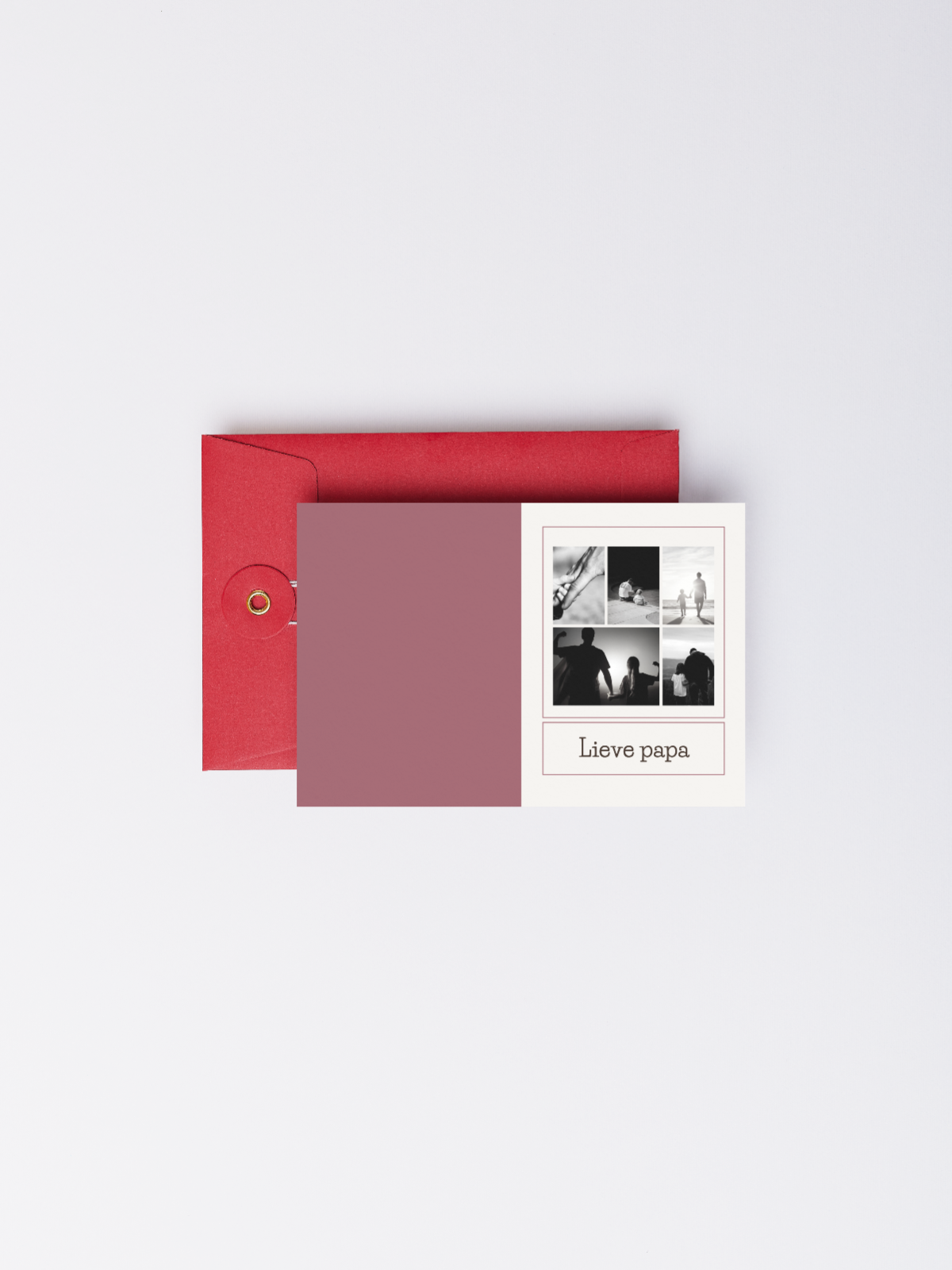 De voorkant heeft ruimte voor meerdere foto’s, die volledig naar wens kunnen worden aangepast. Ook de naam of aanspreekvorm op de kaart kan gepersonaliseerd worden, zodat het een uniek en waardevol gebaar wordt.